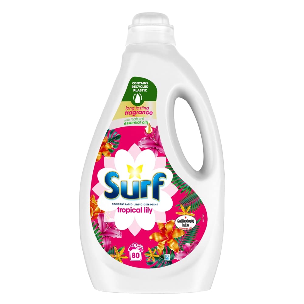 Surf Tropical Lily with its exotic fragrance is available in washing liquid, washing powder and washing capsules and is suitable for washing both colours and whites.