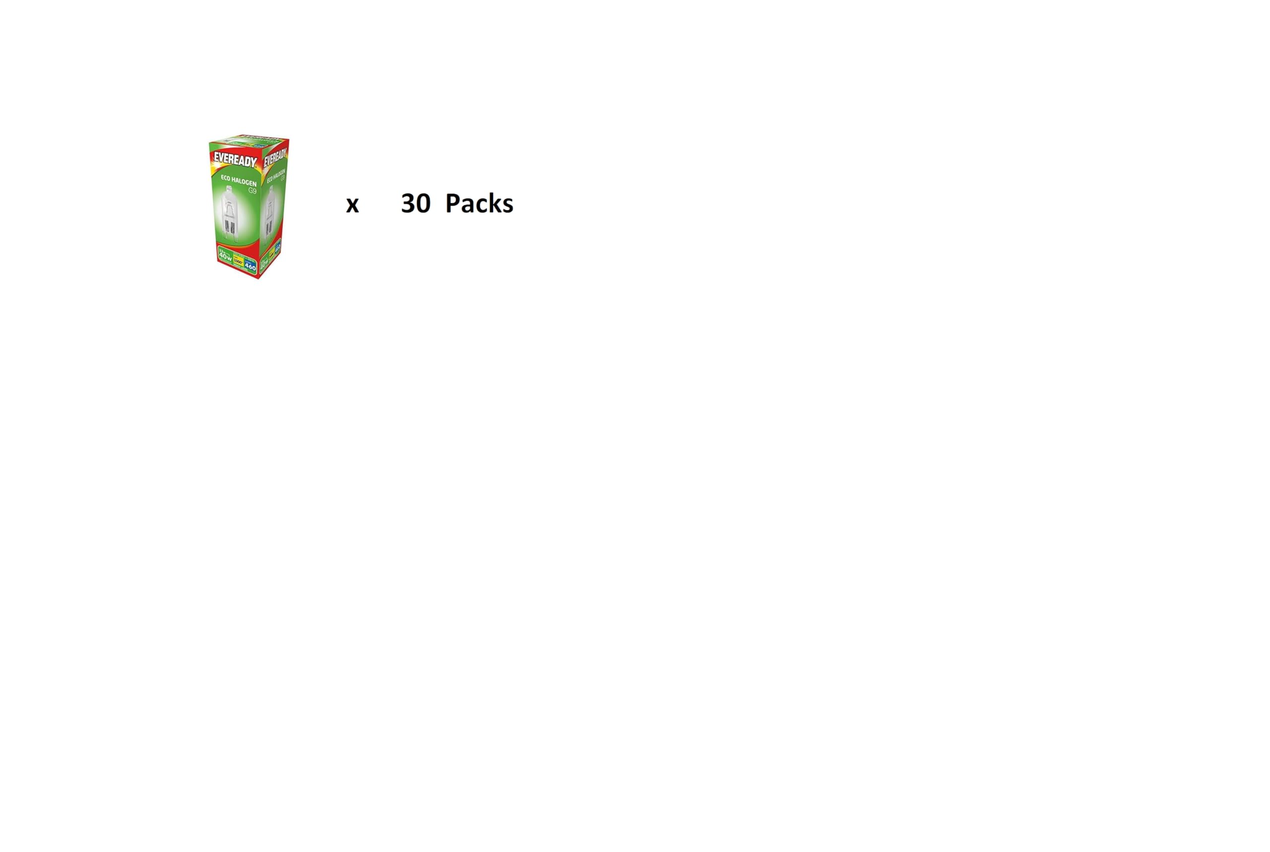 30 x G9 33W=40w Energiser Branded Eco Halogen Bulbs Dimmable Capsules Pack