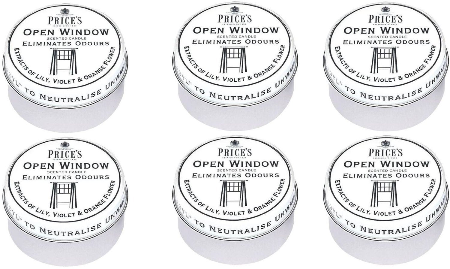 6 x Prices Open Window Candle In Tin Eliminates Odours VendorPrice's Share WhatsApp Deel X Pin it Messenger Email 6 x Prices Open Window Candle In Tin Eliminates Odours VendorPrice's Share WhatsApp Deel X Pin it Messenger Email Product form Barcode: 5054203982767 Delivery within 48 hours Mid weeksMonday to friday we offer next day delivery if the product is on stock and exceptions on holidays.WeekendsWe offer no deliveries in the weekends.InternationalDepending on where you’re located, we offer next day delivery. Check your status on this link£20.35 Incl. VAT Quantity Add to cart This item is a recurring or deferred purchase. By continuing, I agree to the cancellation policy and authorize you to charge my payment method at the prices, frequency and dates listed on this page until my order is fulfilled or I cancel, if permitted.