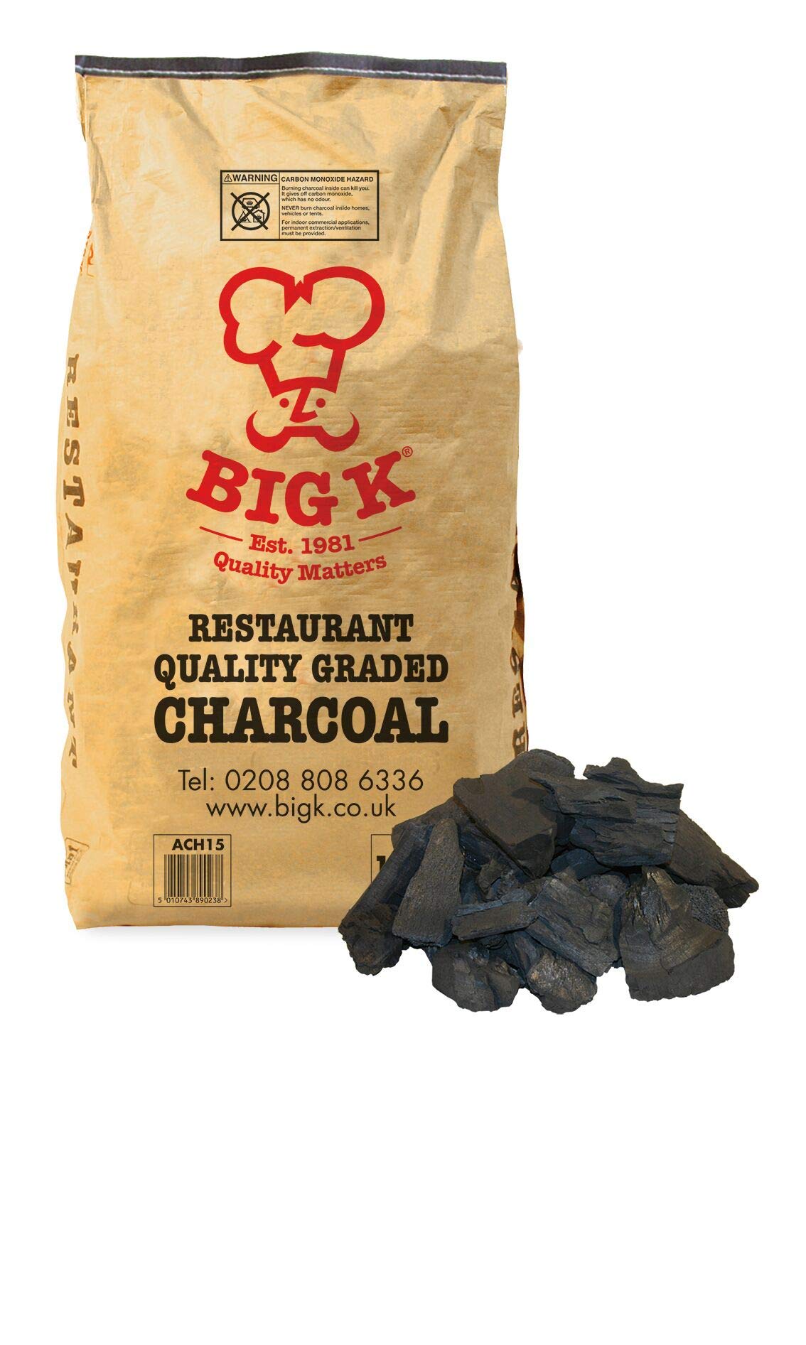 Big K Dura Restaurant Grade Charcoal, 15kg Bag 100% Natural White Quebracho Lumpwood Charcoal, Long lasting, Easy to light, and burns with no smoke, 16 x 45 x 77 cm