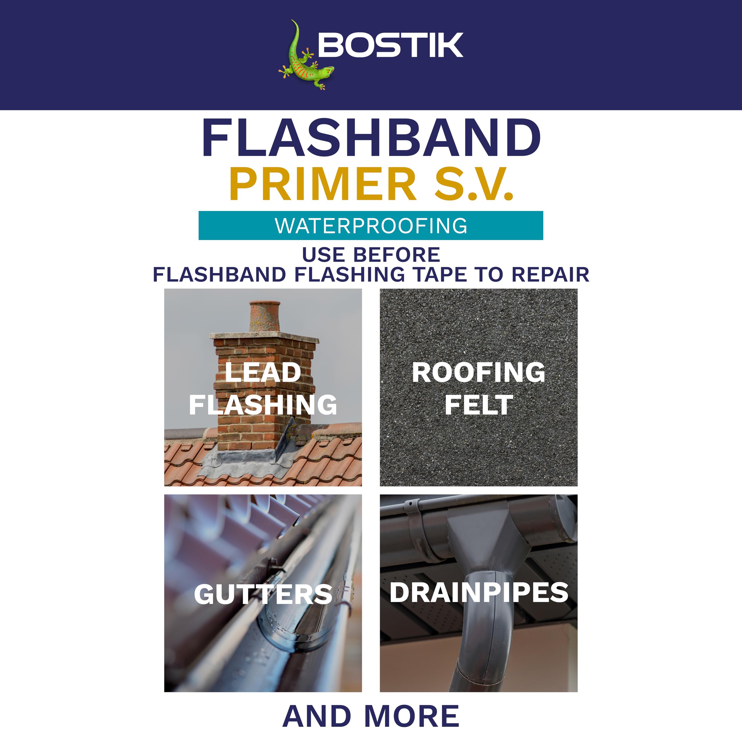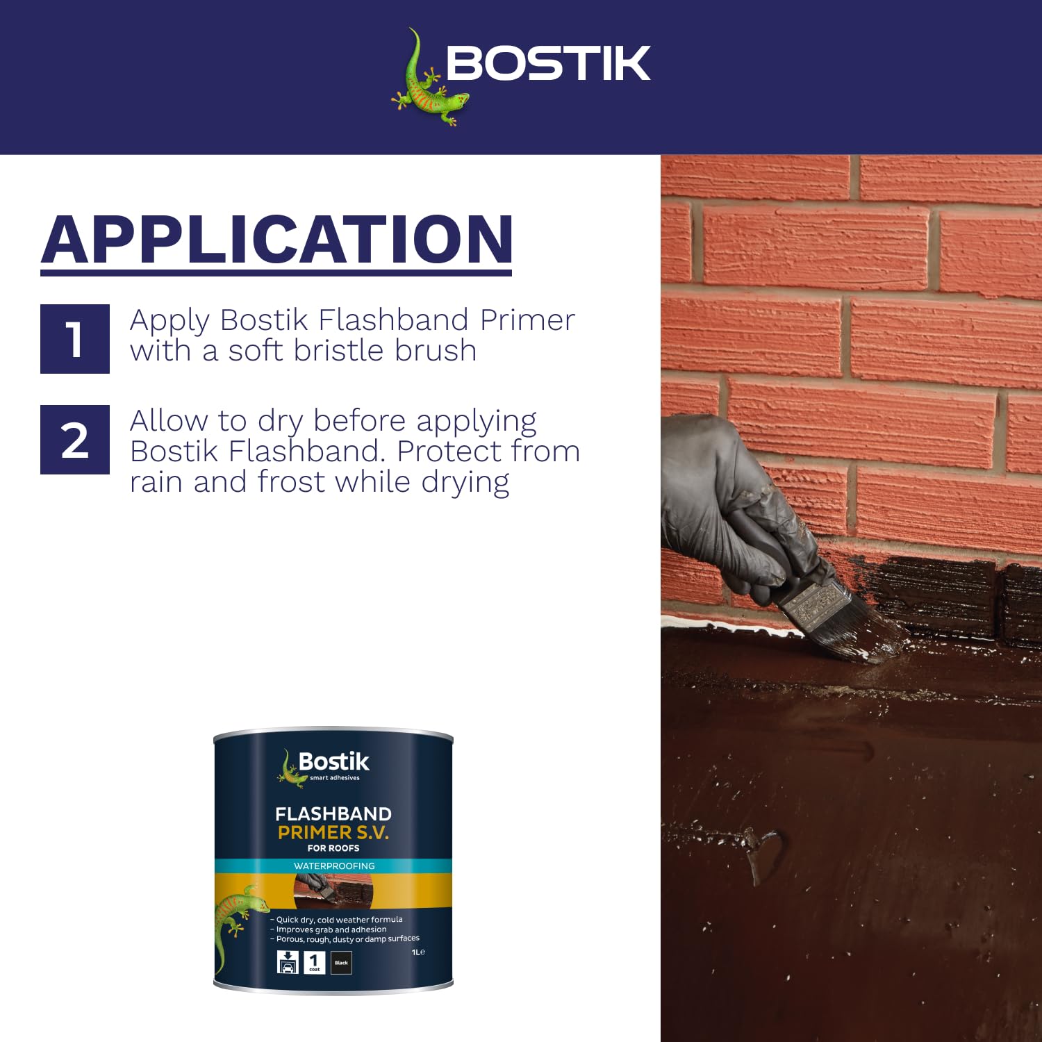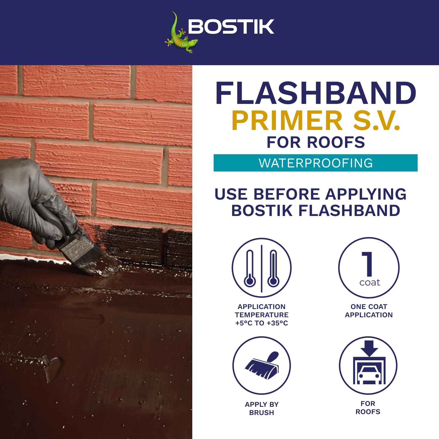 Bostik Flashband Primer S.V. for Roofs, Primer for Flashing Tape, Improves Grab and Adhesion, Colour: Black, Size: 1L