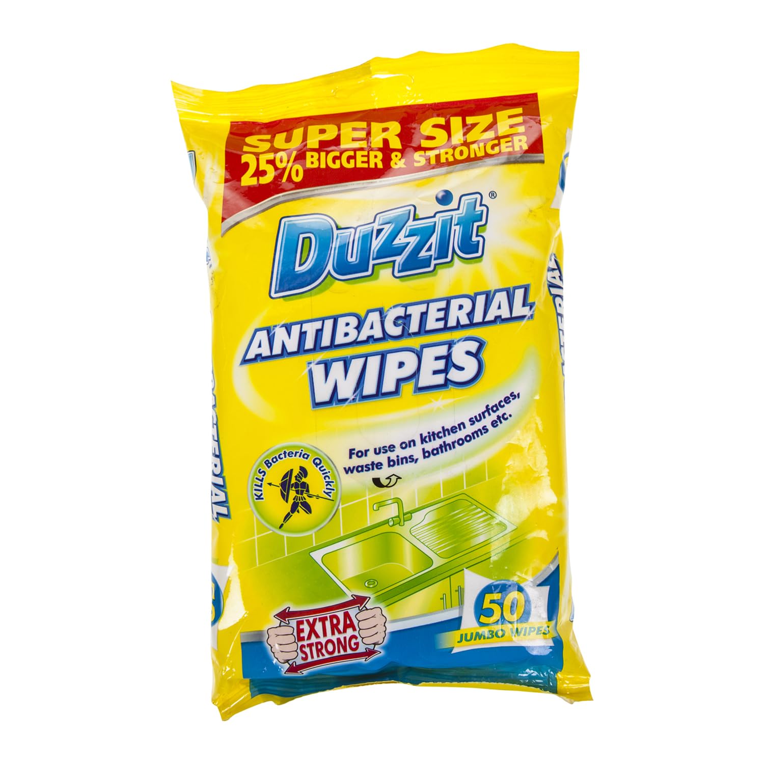 Duzzit Antibacterial Wipes - 50 Jumbo Wipes - Extra Strong - Pack of 3 (50 x 3, 150 Wipes)