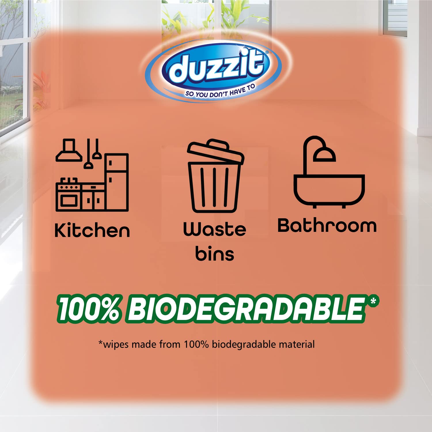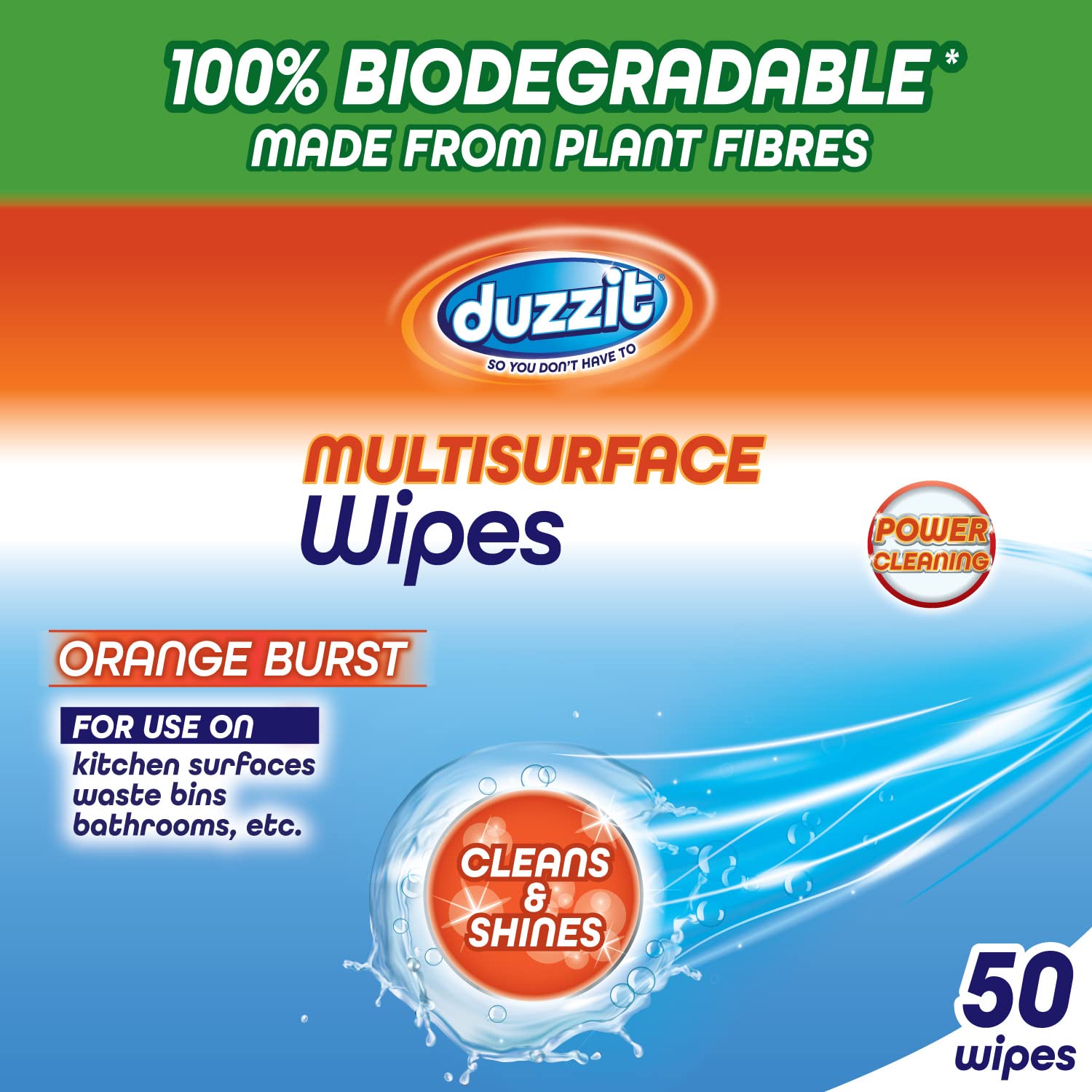 Duzzit Multisurface Wipes100 Percent Biodegradable Wipes, Pack 50 Wipes, Orange Burst Fragrance