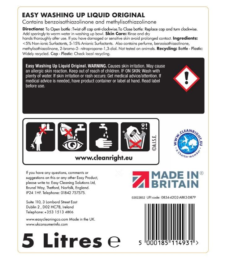 Easy Original Dish Washing Up Liquid Clean Scent Detergent Kitchen Soap 5L Boxed