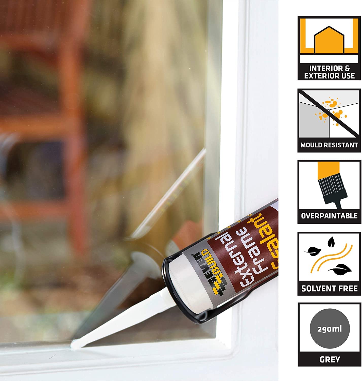 p>EXTERNAL FRAME SEALANTbr />External Frame Sealant is a high quality acrylic based sealant that provides a long lasting, permanently flexible seal that can be overpainted when cured./p> p>br />Permanently flexiblebr />Adheres to most surfacesbr />Mould resistantbr />Overpaintablebr />Easy clean upbr />Application temp. range +4°C to +40°Cbr />Do not apply External Frame Sealant at temperatures below +4°C./p> p>Suitable for internal and external use around window and door frames (Internal only on PVCu)br />Provides a permanently flexible, long lasting, mould resistant sealbr />Also suitable to be used to seal cracks and gaps in brickwork, stone and concretebr />Once cured the sealant can be over painted if required with most paintsbr />Available in white, stone, grey and brownbr />Apply using a caulk, sealant / adhesive cartridge application gun, we recommend the Everbuild Power Pro Heavy Duty Sealant / Adhesive Cartridge Applicator Gun/p>