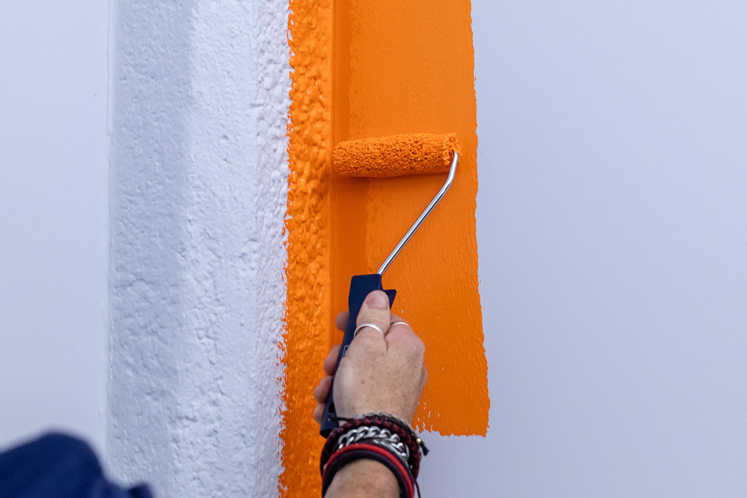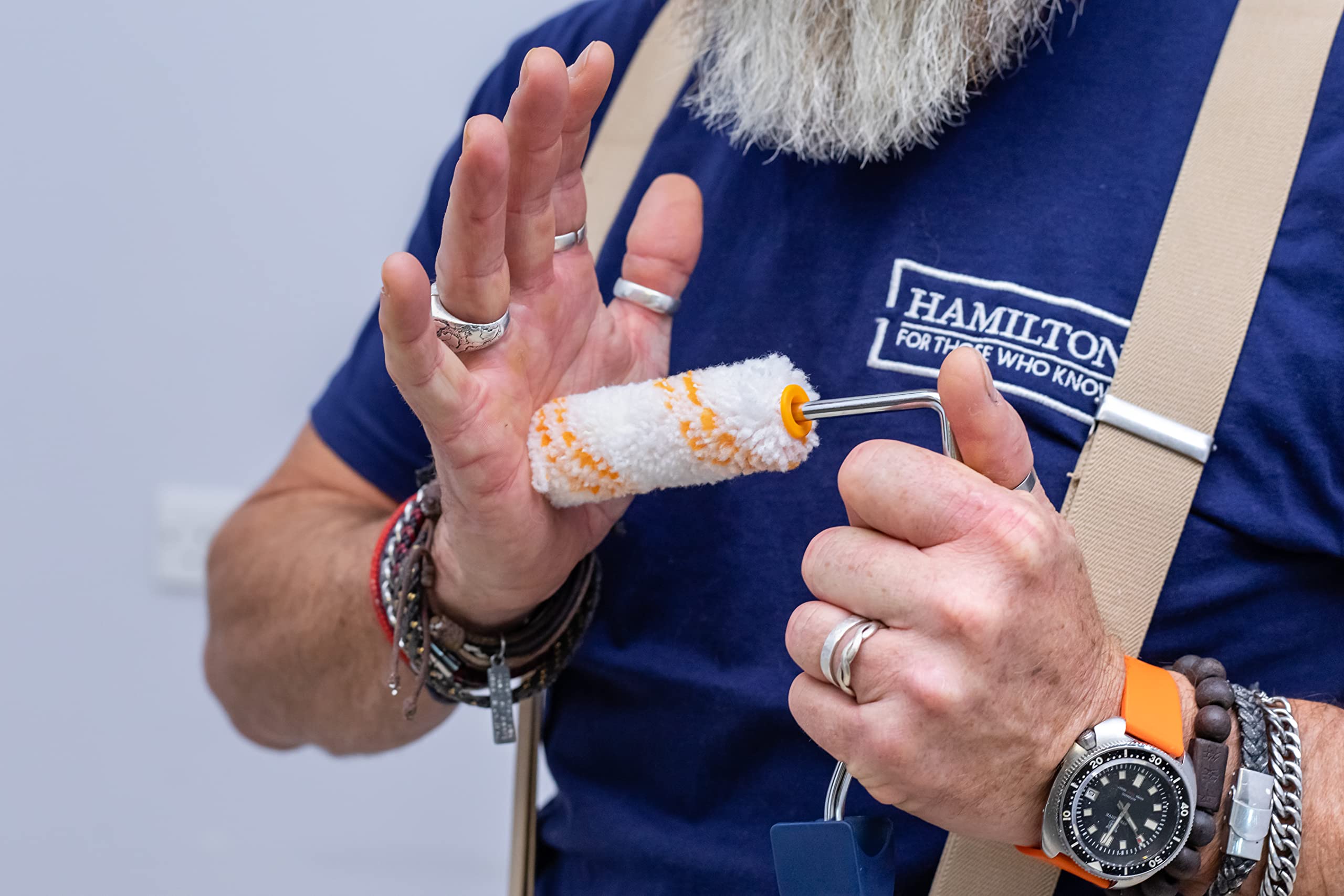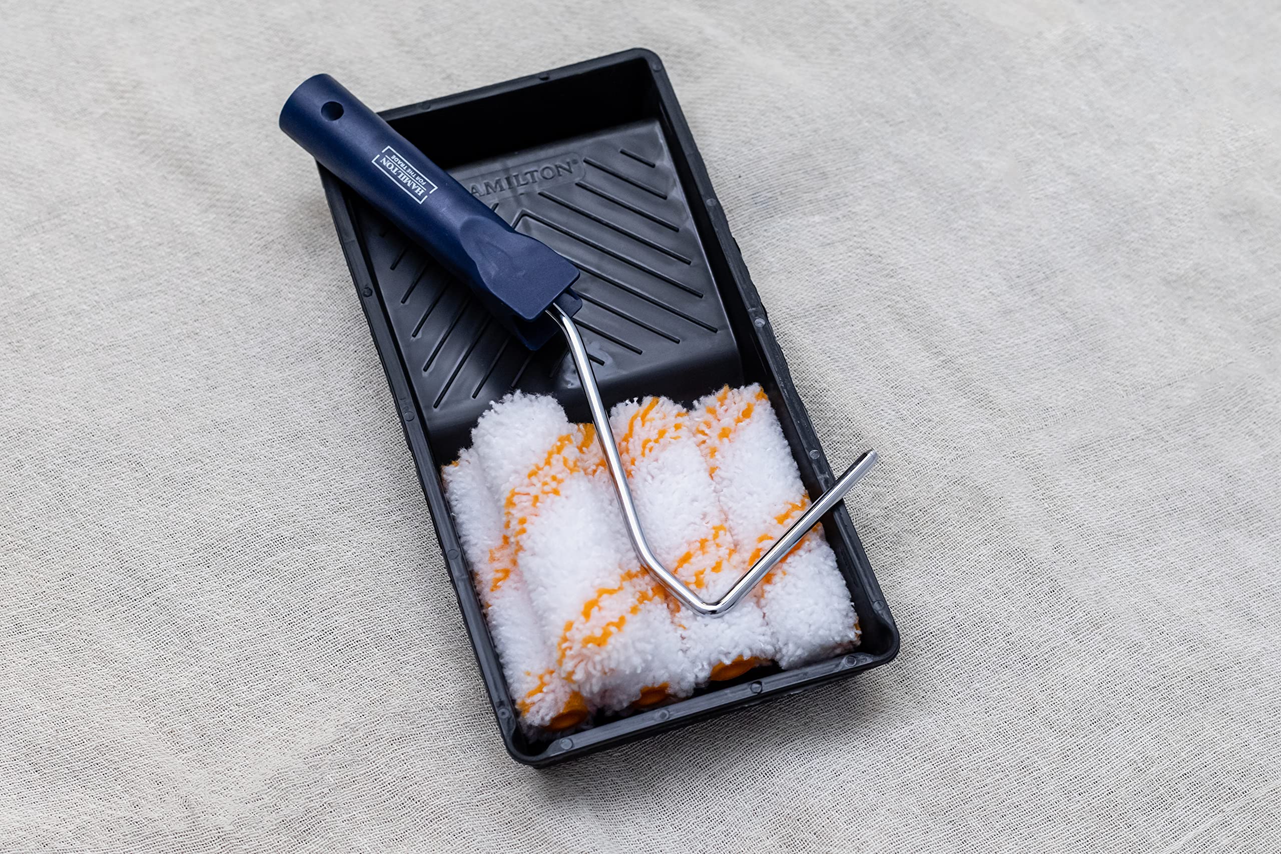 Hamilton for The Trade 7 Piece Medium Pile Paint Roller Set with Tray, 4", White/Orange/Blue