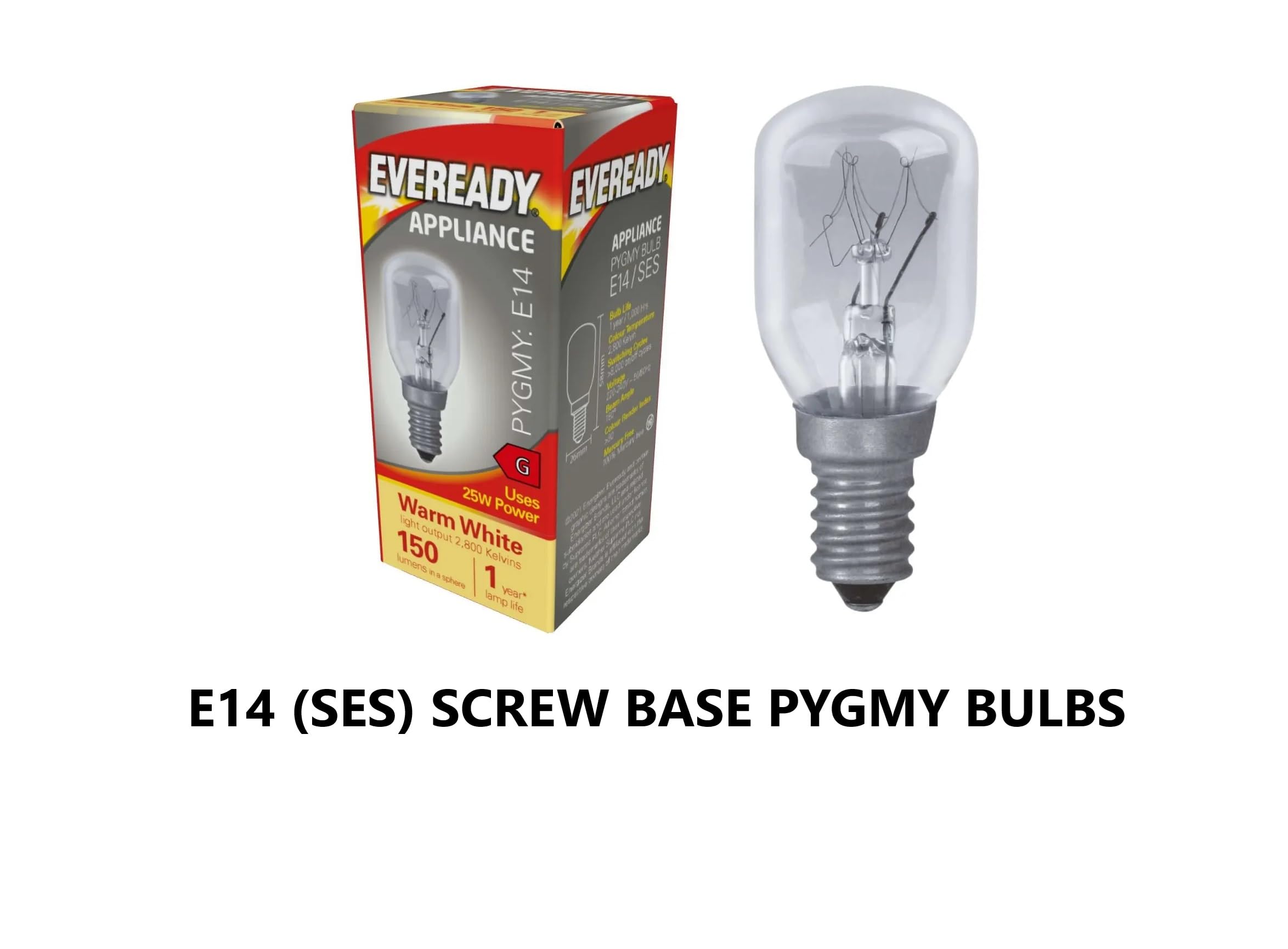 Eveready Pygmy Bulb - Clear Glass - Small Edison Screw E14 (SES) - Warm White - 25w (Pack of 5) Read more