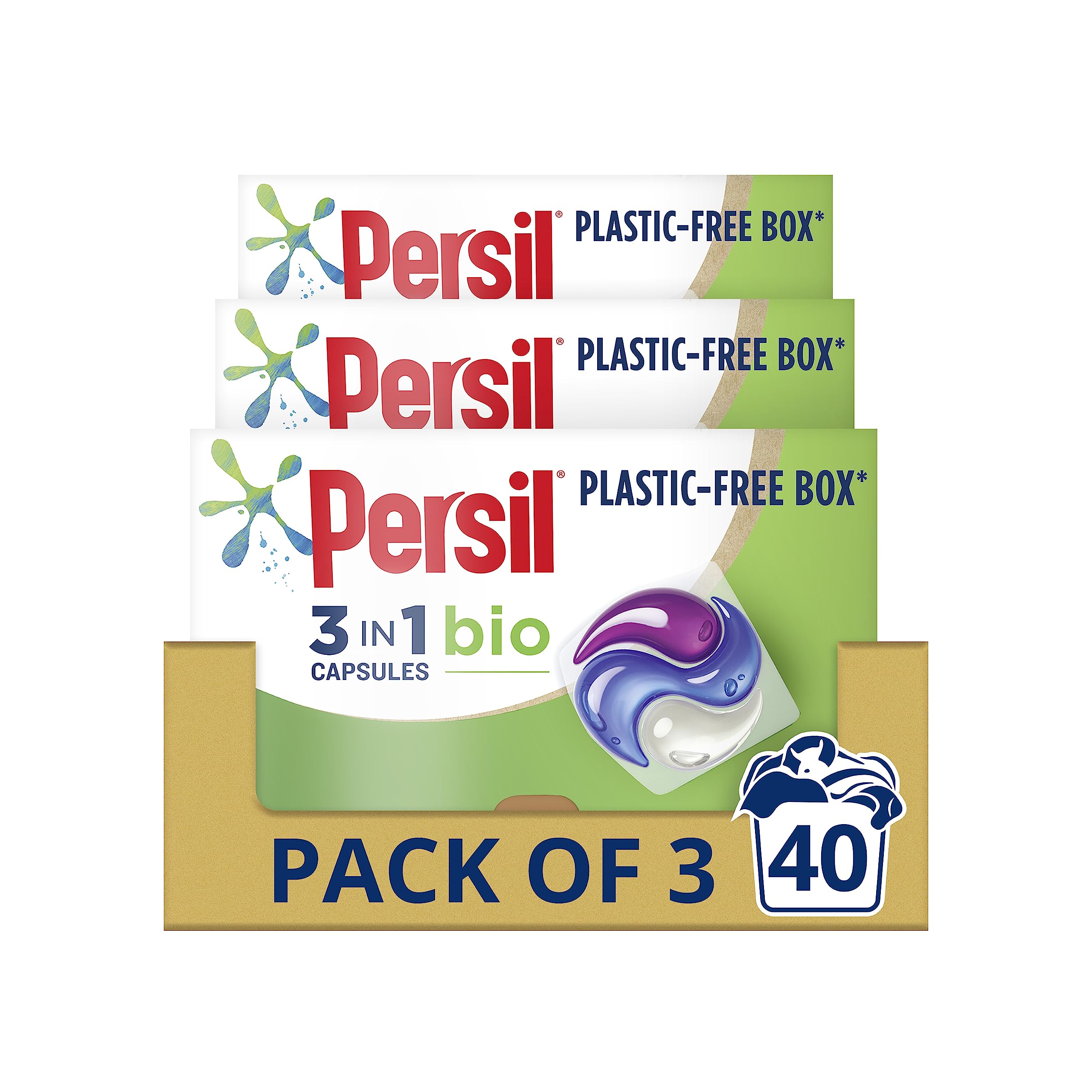 Persil 3 in 1 Bio Washing Capsules laundry capsules for a powerful clean 1st time with recyclable, plastic-free box* 3x 40 capsules (120 washes)