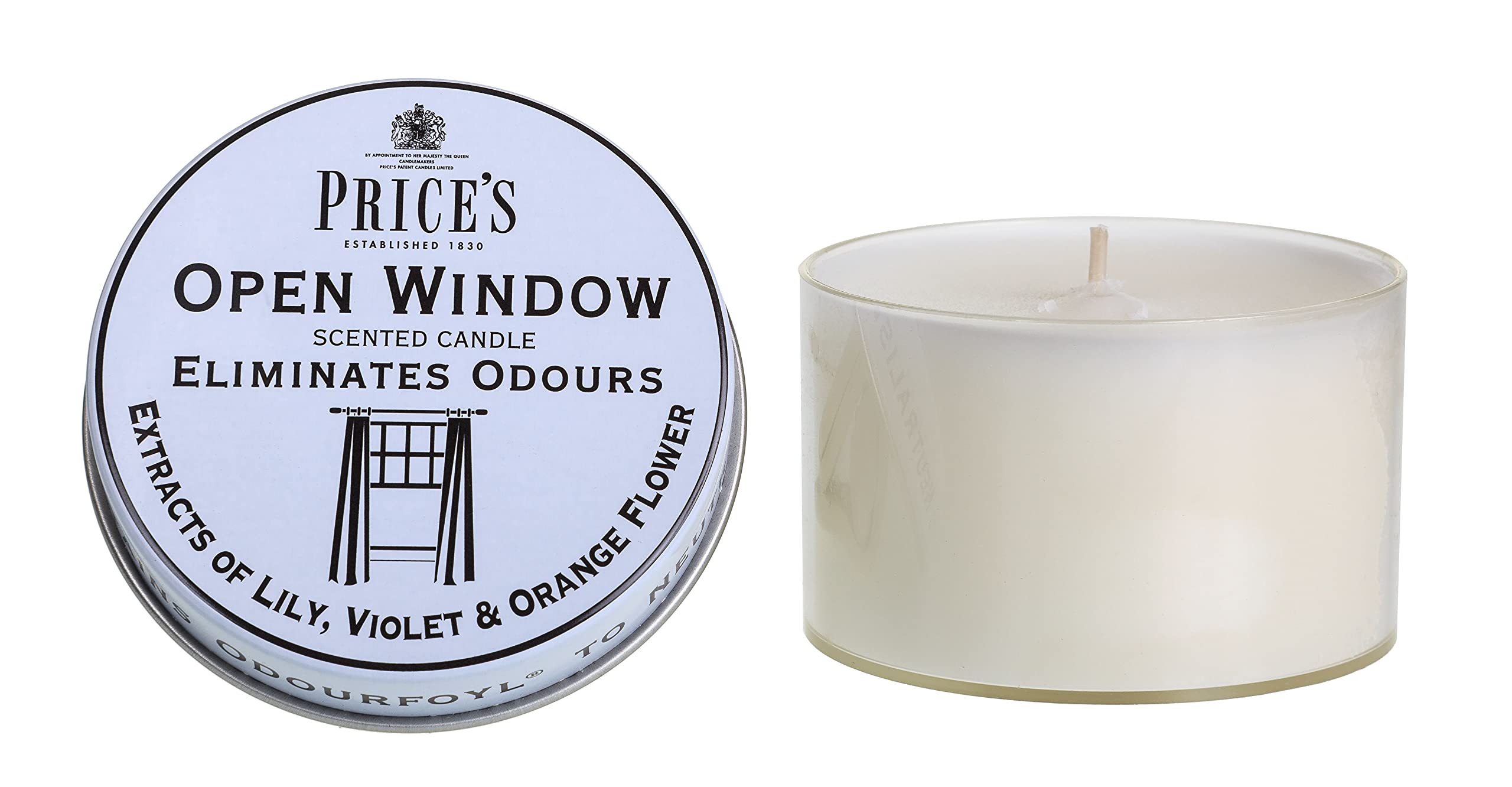 Price's Open Window Candle in Tin Eliminates Odours - Triple Pack VendorPrice's Share WhatsApp Deel X Pin it Messenger Email Price's Open Window Candle in Tin Eliminates Odours - Triple Pack VendorPrice's Share WhatsApp Deel X Pin it Messenger Email Product form Barcode: 5052990950976 Delivery within 48 hours Mid weeksMonday to friday we offer next day delivery if the product is on stock and exceptions on holidays.WeekendsWe offer no deliveries in the weekends.InternationalDepending on where you’re located, we offer next day delivery. Check your status on this link£10.99 Incl. VAT Quantity Add to cart This item is a recurring or deferred purchase. By continuing, I agree to the cancellation policy and authorize you to charge my payment method at the prices, frequency and dates listed on this page until my order is fulfilled or I cancel, if permitted.