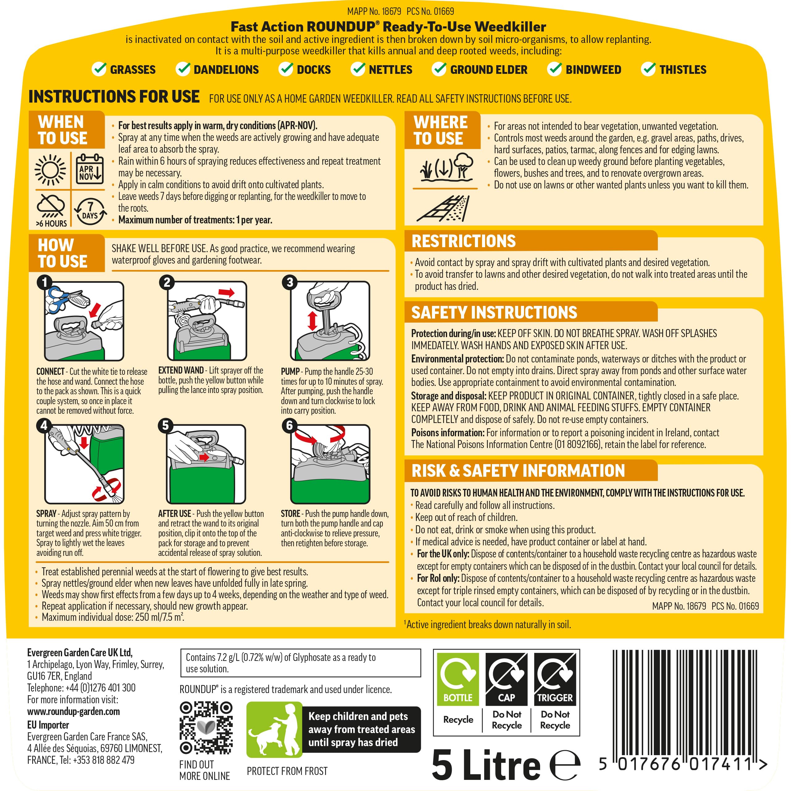 Roundup Fast Action Weedkiller Pump 'N Go Ready To Use Spray, 5 Litre