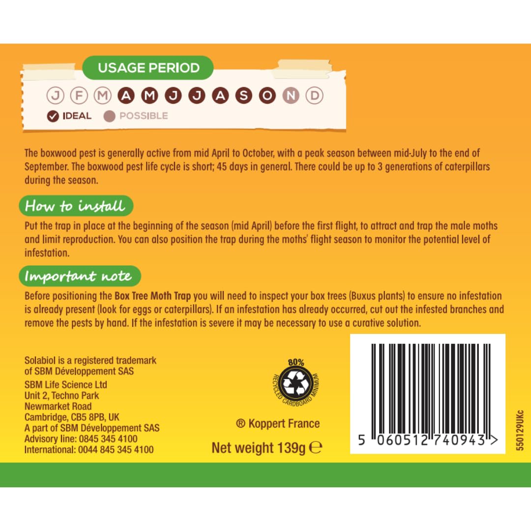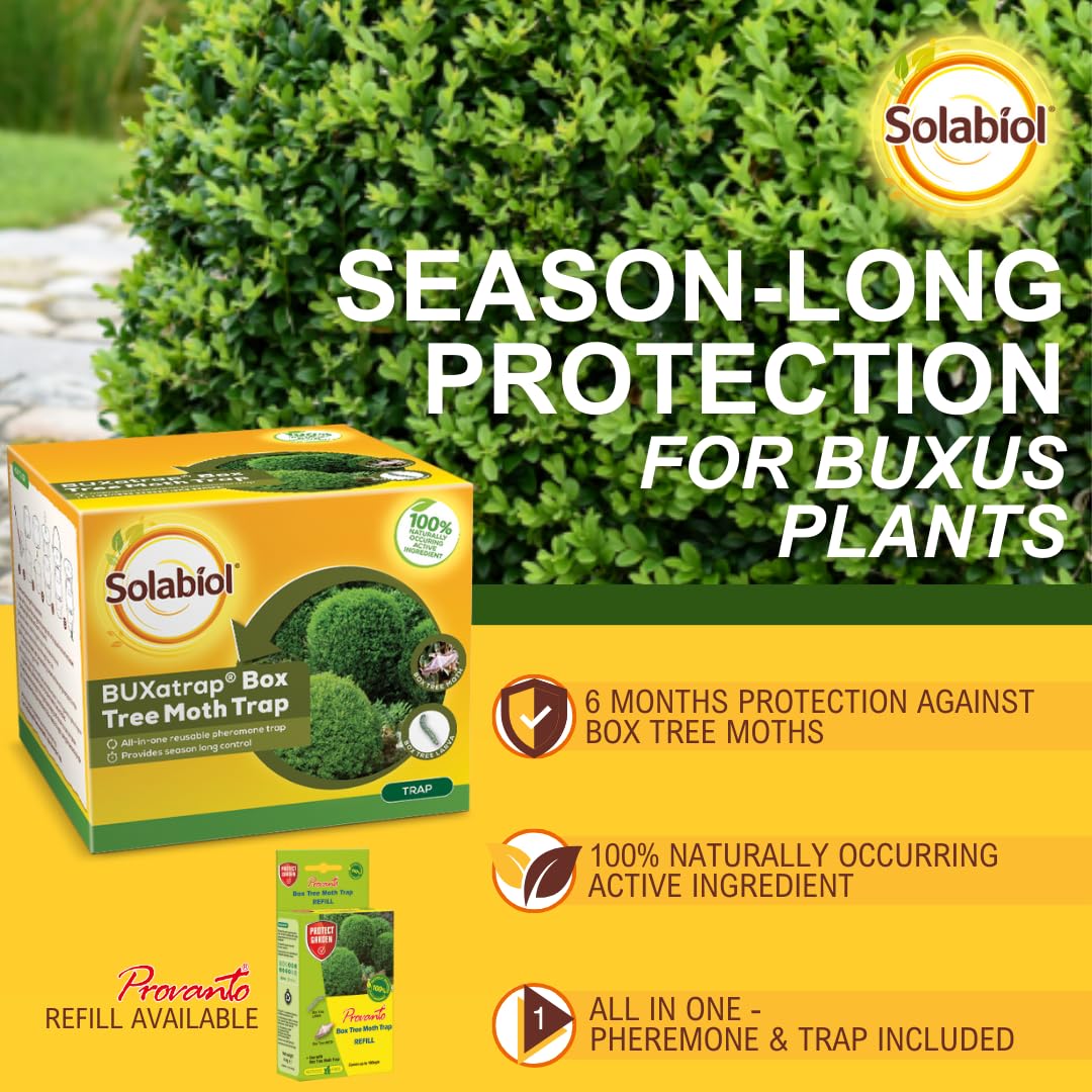 Solabiol Buxatrap Box Tree Moth Trap - Reusable Box - Tree Moth Biological Protection Trap - with Refillable 3 Month Pheromone Solution - Bux Protector Against Moths - Covers 180 SqM, Yellow