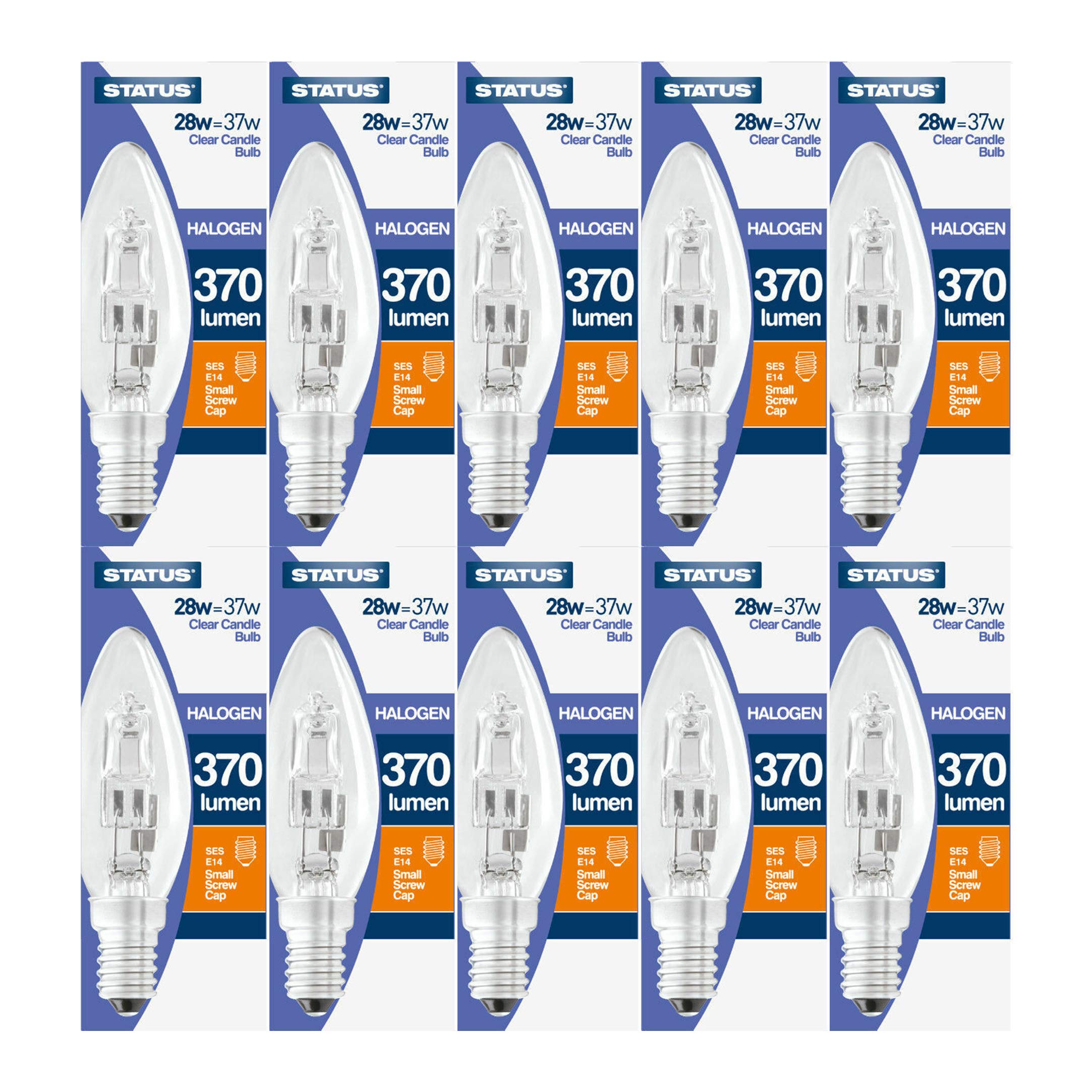 Status 28w 37w Watt E14 SES Small Screw In Clear Halogen Saver Candle Light Bulb x 10