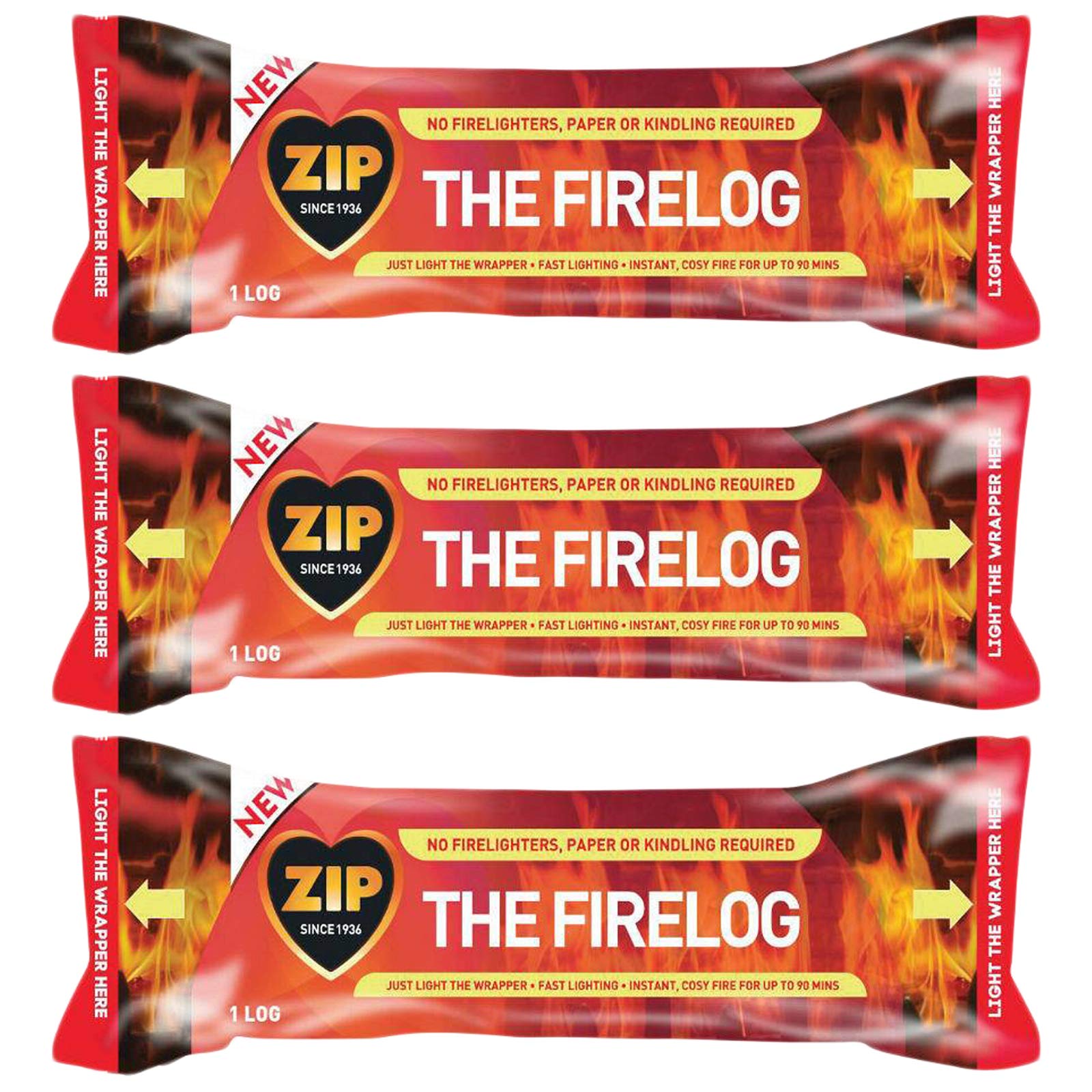 Zip The Firelog 100% Natural Instant Lighting Log Burns for 90 Minutes 700 g (3 Firelogs)